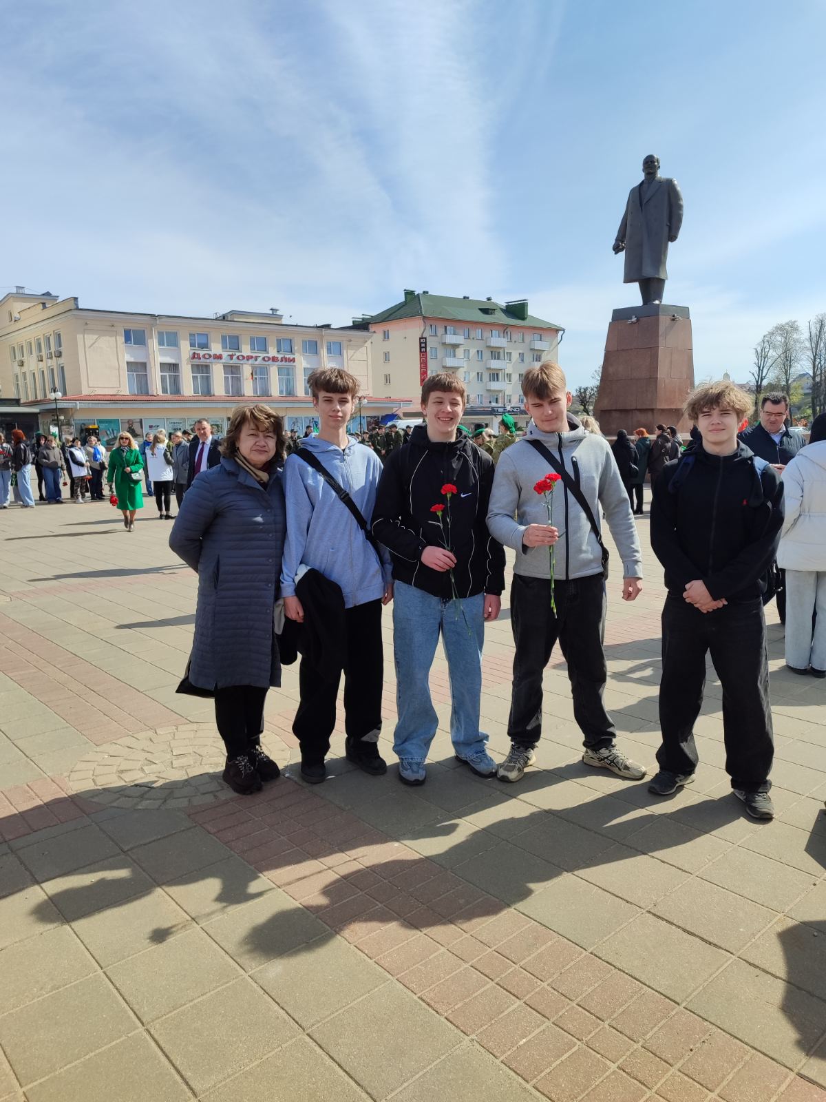 Завершилась церемония возложением цветов к памятнику В. И. Ленину.